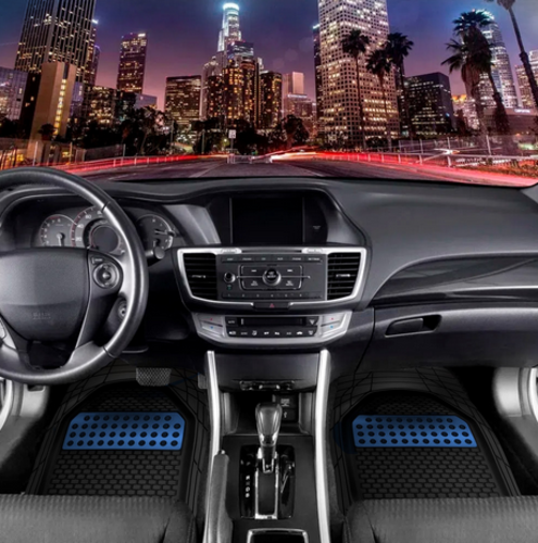 Diseño de respaldo antideslizante para mantener las esteras de forma segura en su lugar. Equipas ergonómicas en la parte superior para dar tu tracción y comodidad de pies. Mantiene su coche limpiar durante períodos más largos de tiempo con las esteras de piso de goma de servicio pesado para los asientos delanteros y traseros de su vehículo. Ayuda a proteger el suelo original de la hierba permanente, el agua y las manchas de tierra.